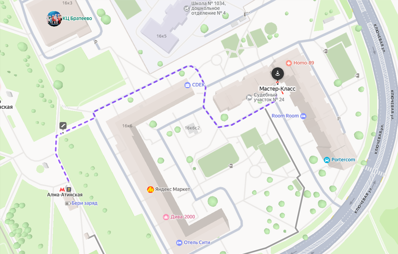 3 минуты пешком от метро Алма-Атинская (выход 2).
